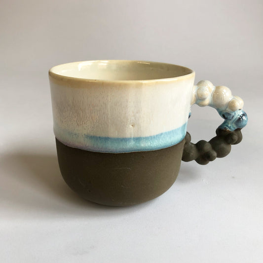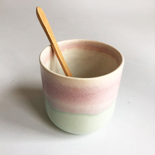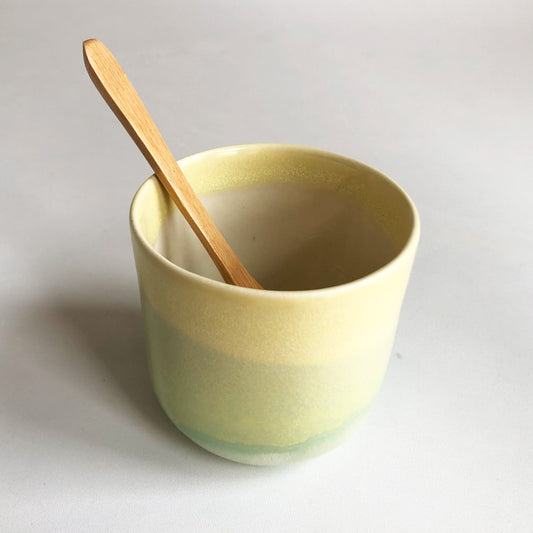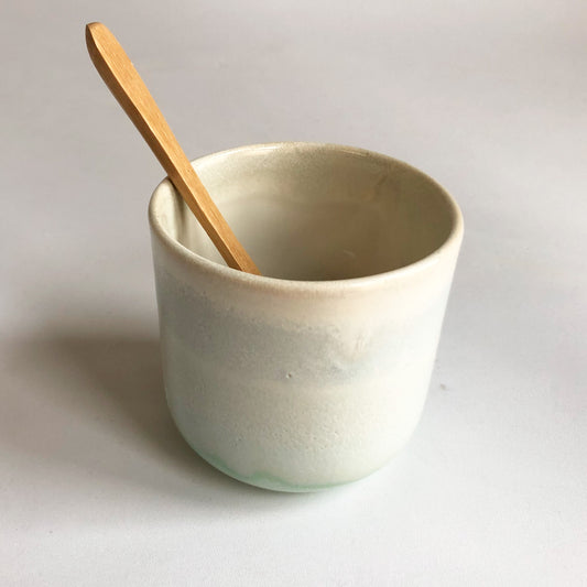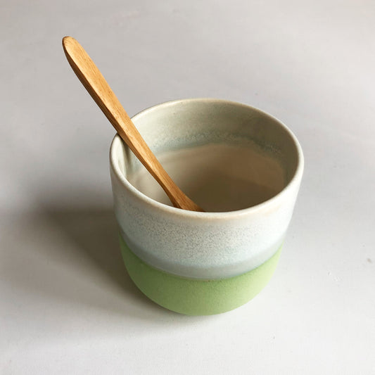 Lille kop uden hank med mat grøn bund og isblå glasur