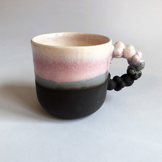 Lille kop med mat sort bund og lyserød glasur