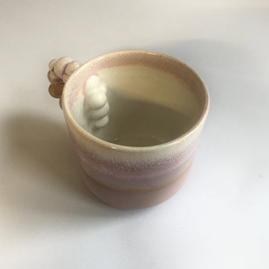 Lille kop med mat ferskenfarvet bund og grøn glasur