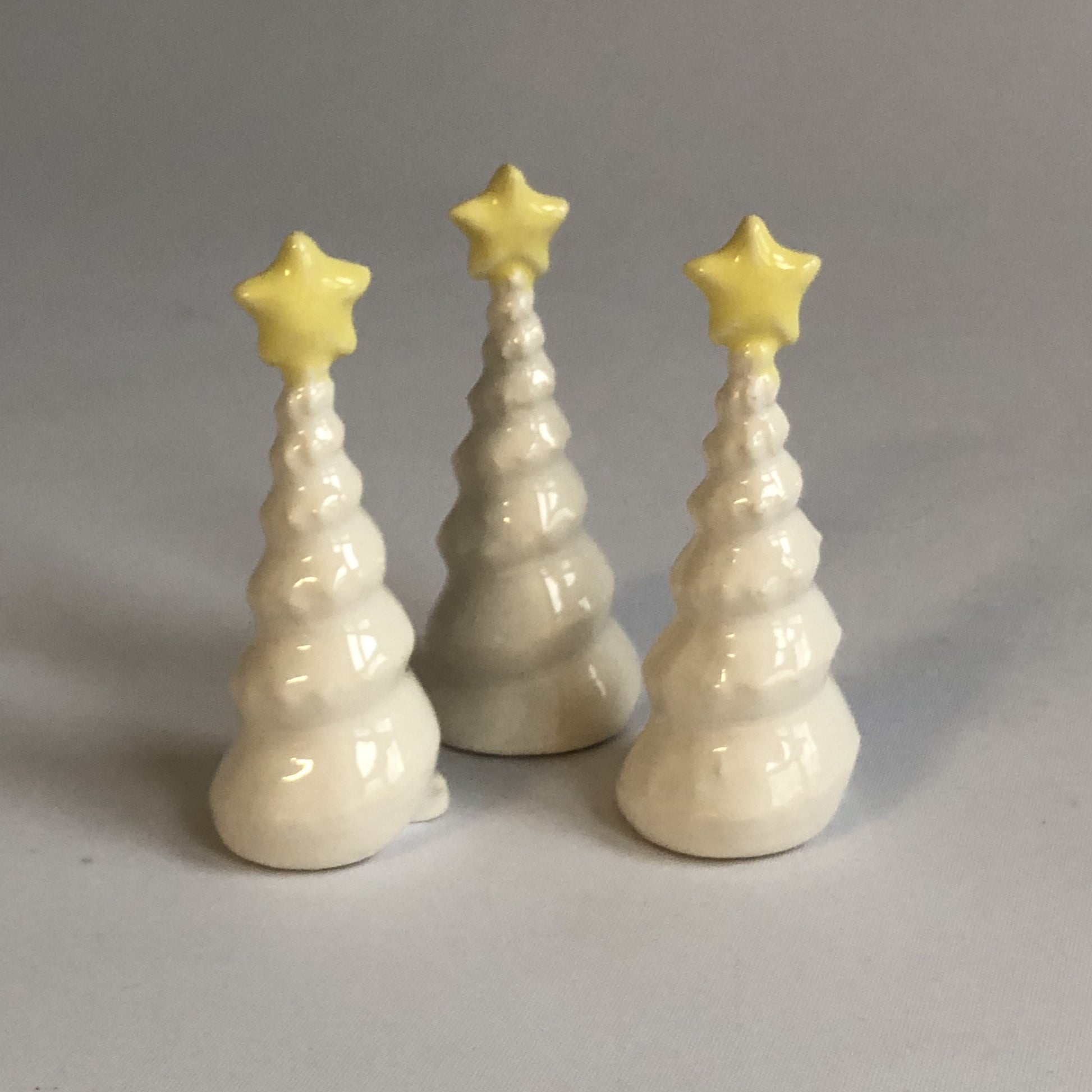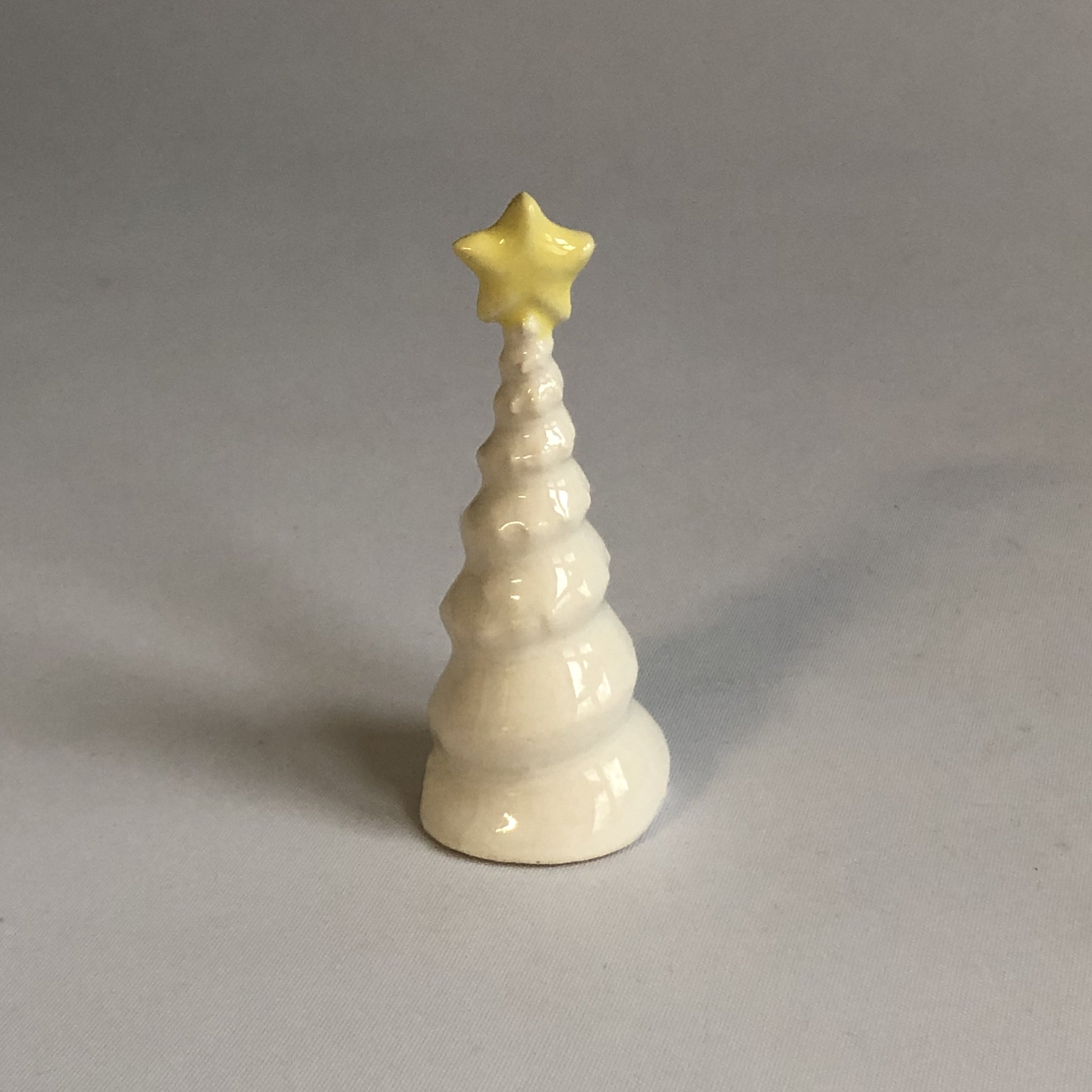Lille juletræ støbt fra en konkylie med hvid glasur.