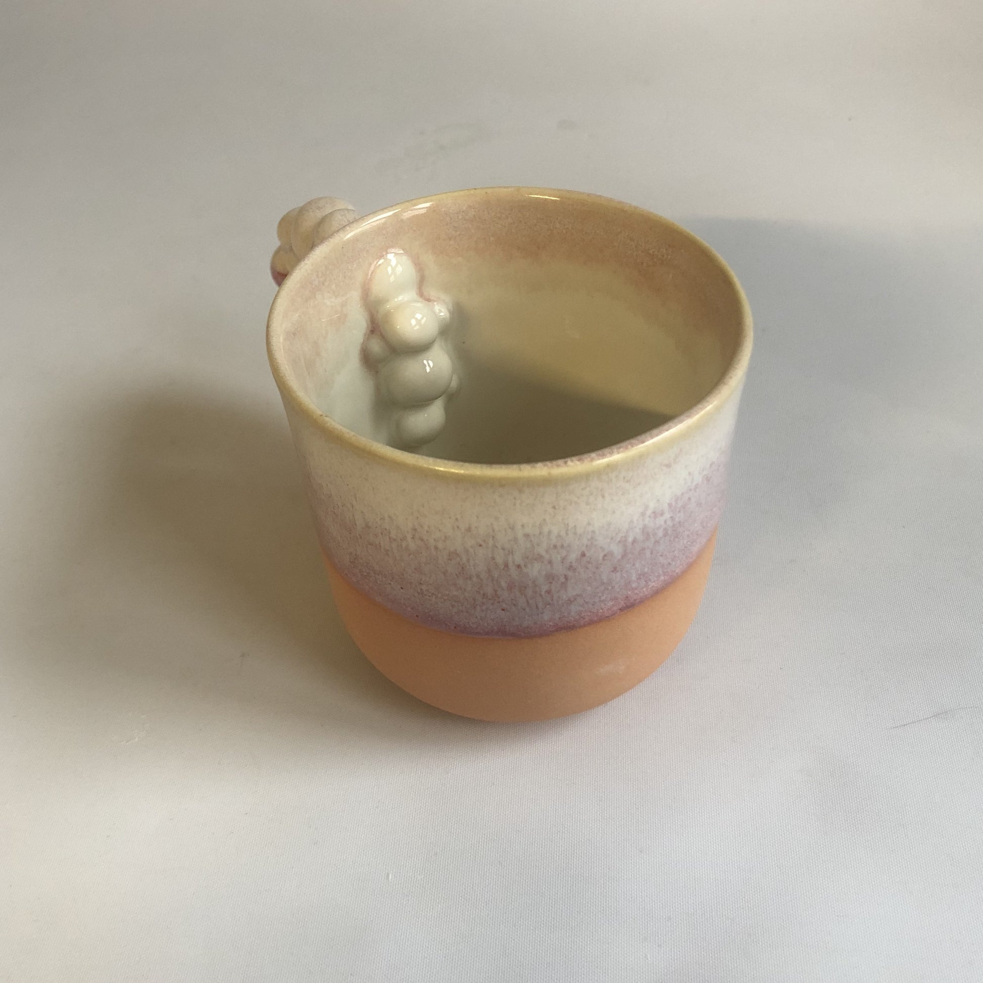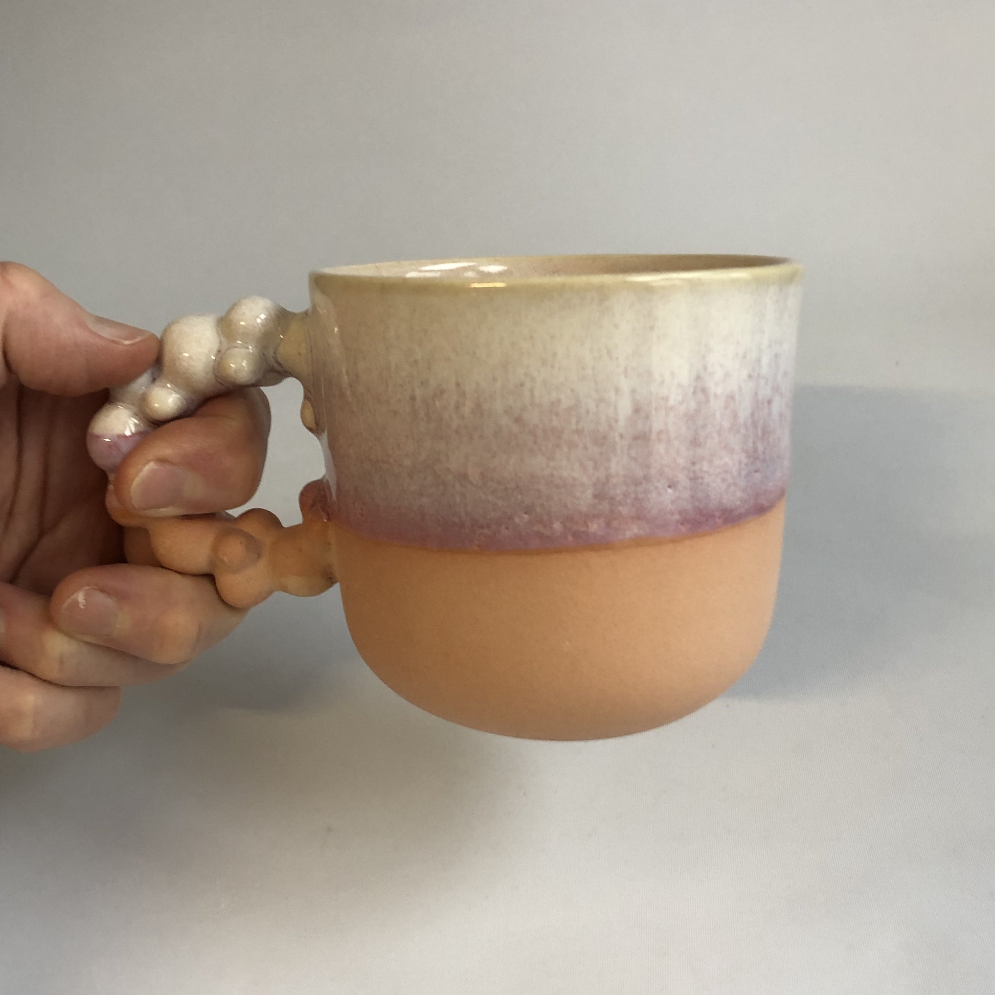 Stor kop med mat ferskenfarvet bund og lyserød glasur