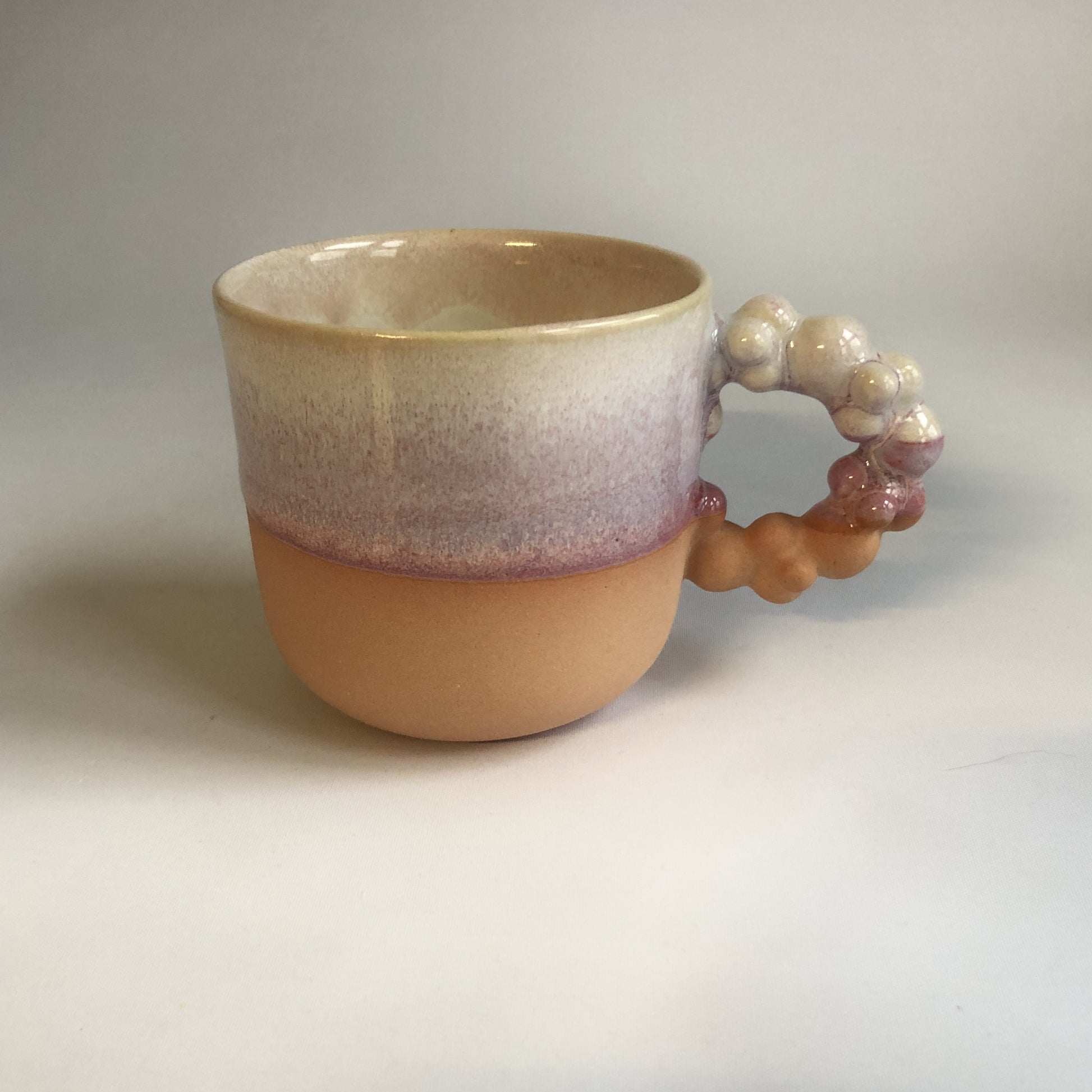 Håndlavet kop i stentøj. Alle kopperne er unikke, da hanken er sat på forskelligt. Denne kop har mat bund og blank glasur på den øverste del af koppen.