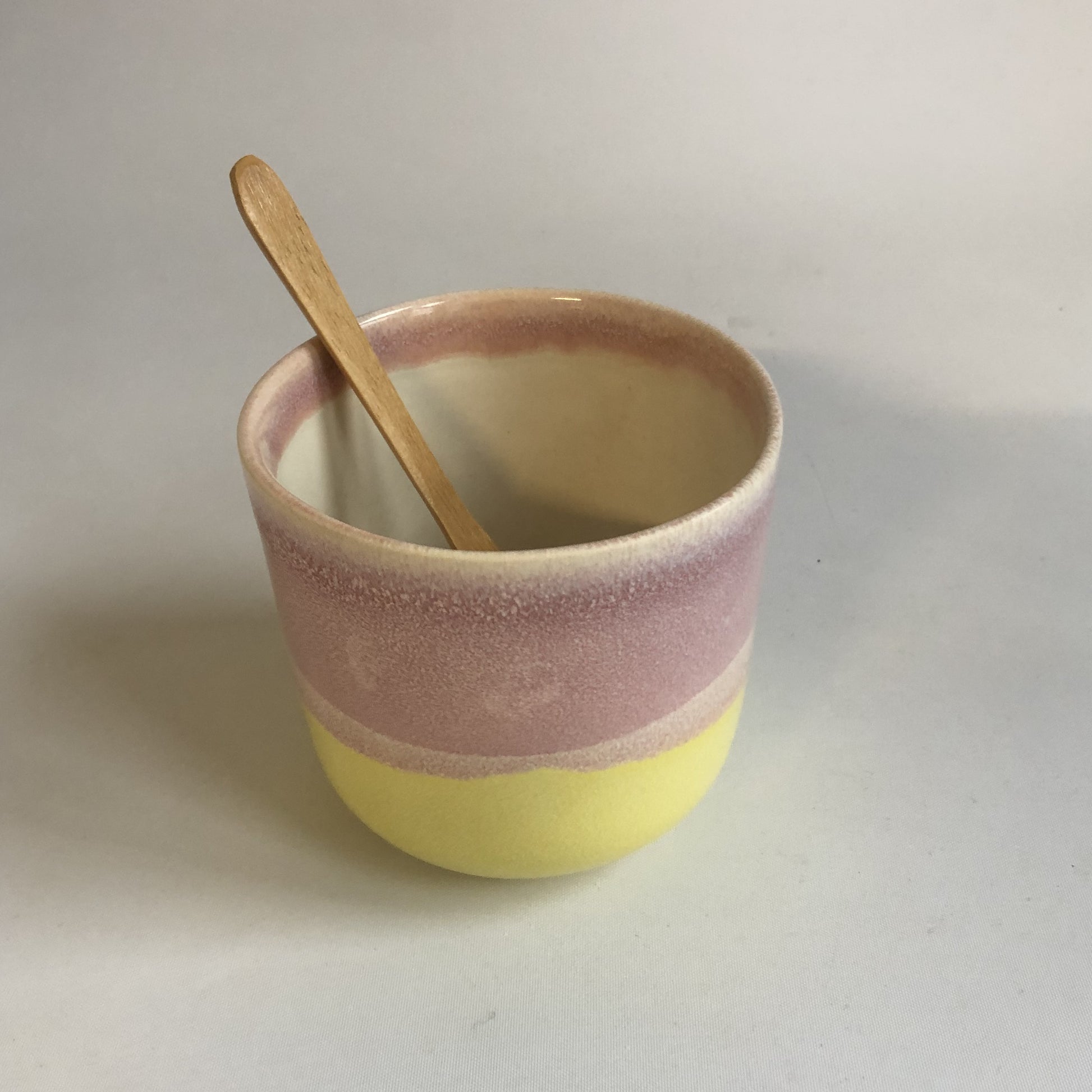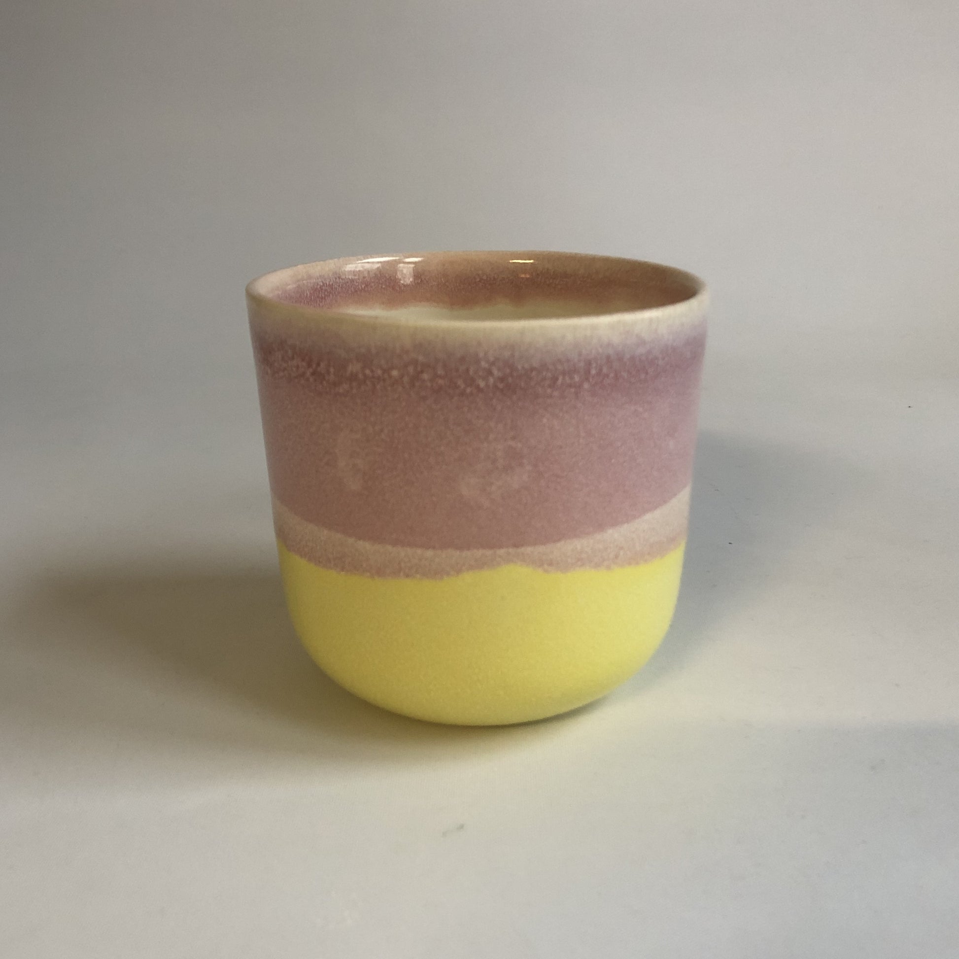 Håndlavet kop i stentøj. Koppen er glaseret med to forskellige glasurer, der giver en changerende effekt. Koppen kan b.la. bruges til kaffe, snacks, dip eller lign.